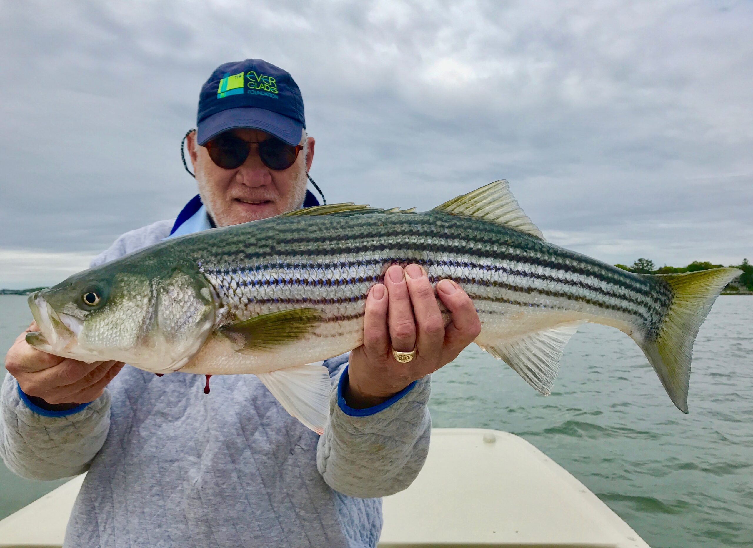 On board today. Lt. Col. Richard “The Machine” Comstock for fly or die striped bass fishing.