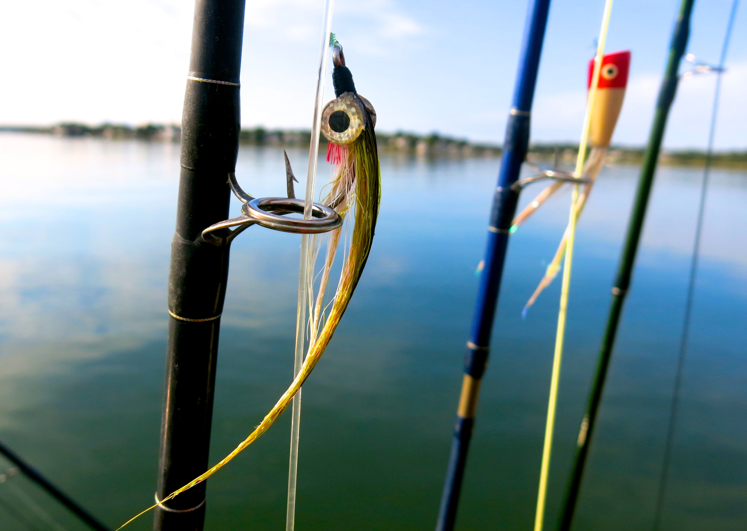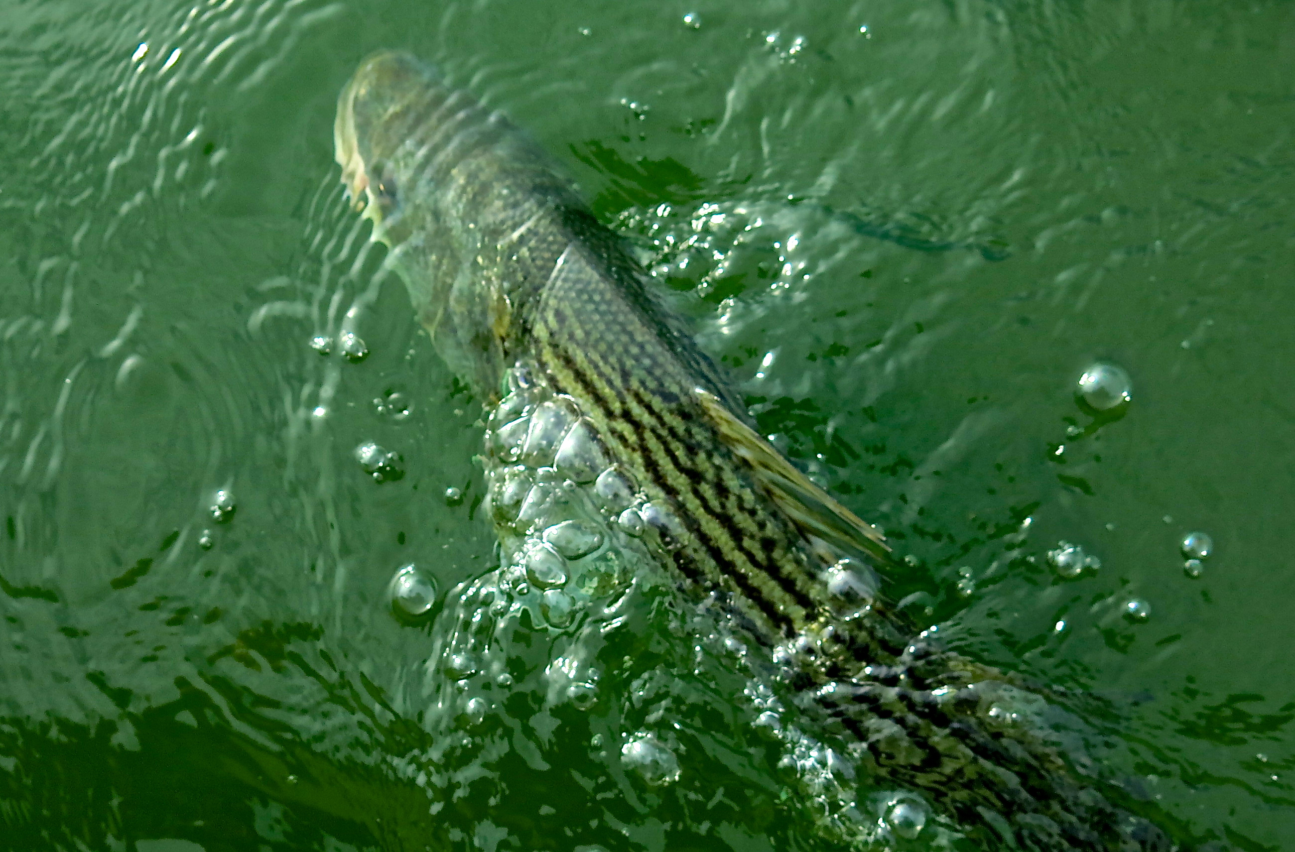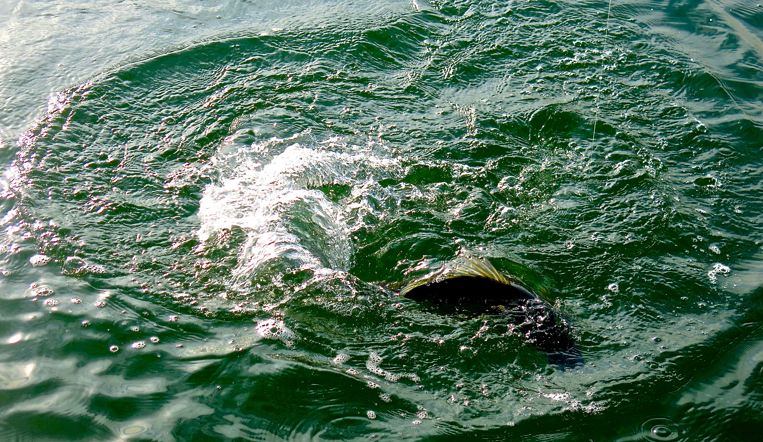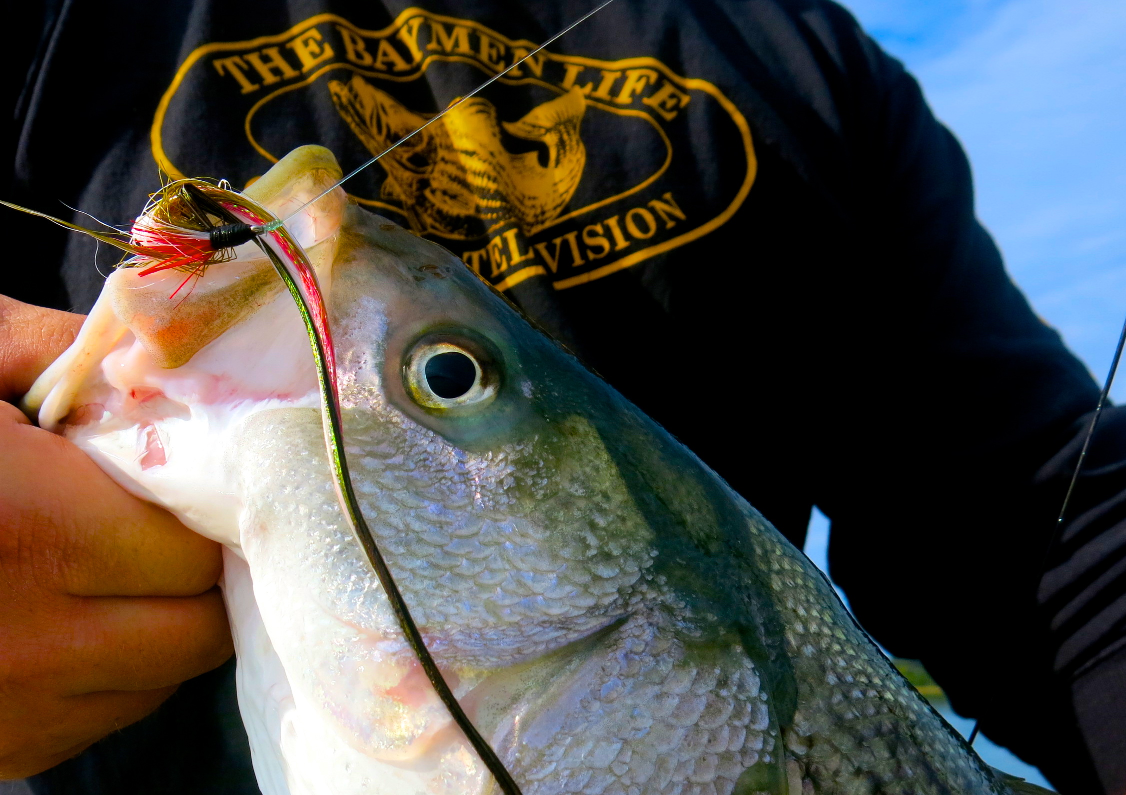 The sky remained overcast all morning and that helped to hold the fish up on top, in my opinion. Our top fly pattern was my Baymen Universal fly, with a BPS red/white popper as a second choice. But the Baymen Universal was getting the majority of the fish. I tied one pattern without the 3/8 soft prism 3D eyes, and tied in a white saddle hackle instead of the usual bleached white bucktail (see my video on how to tie the Baymen Universal on youtube). The fish slammed it all morning.