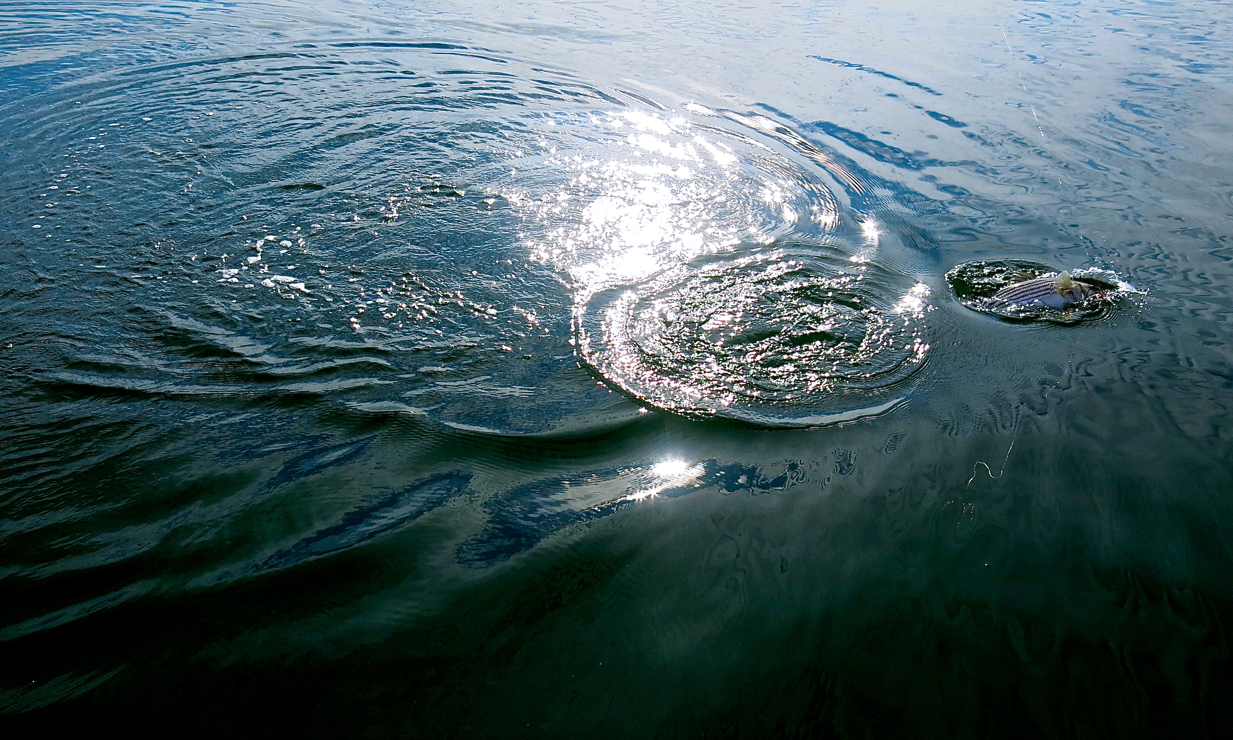 At first light it was flat calm and you could see a fish break a half-mile away. A few birds were working bait but not too many, just enough. Cormorants are here but in small numbers, just like the gulls and the bass. We found fish right away up on the flats. They were spooky and finicky. We landed a few and then moved on to another pod of fish (have not been able to say that in a while!). The shallower the water and the lower the tide, the better the bite. Kyakers dream… But in my skiff that drafts 4-6″ inches of water on the level, we could stay right with the fish.