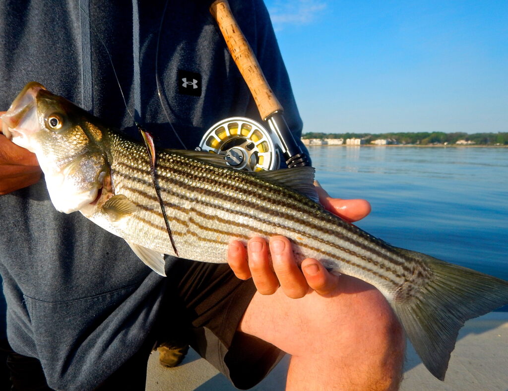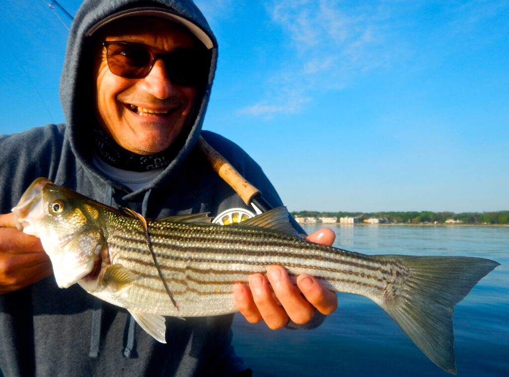 On board today, I had DJ Gene and Julie DuPuis for fly fishing and light tackle striped bass. We tried to figure out how long we have been fishing together and came up with somewhere between 15-20 years!