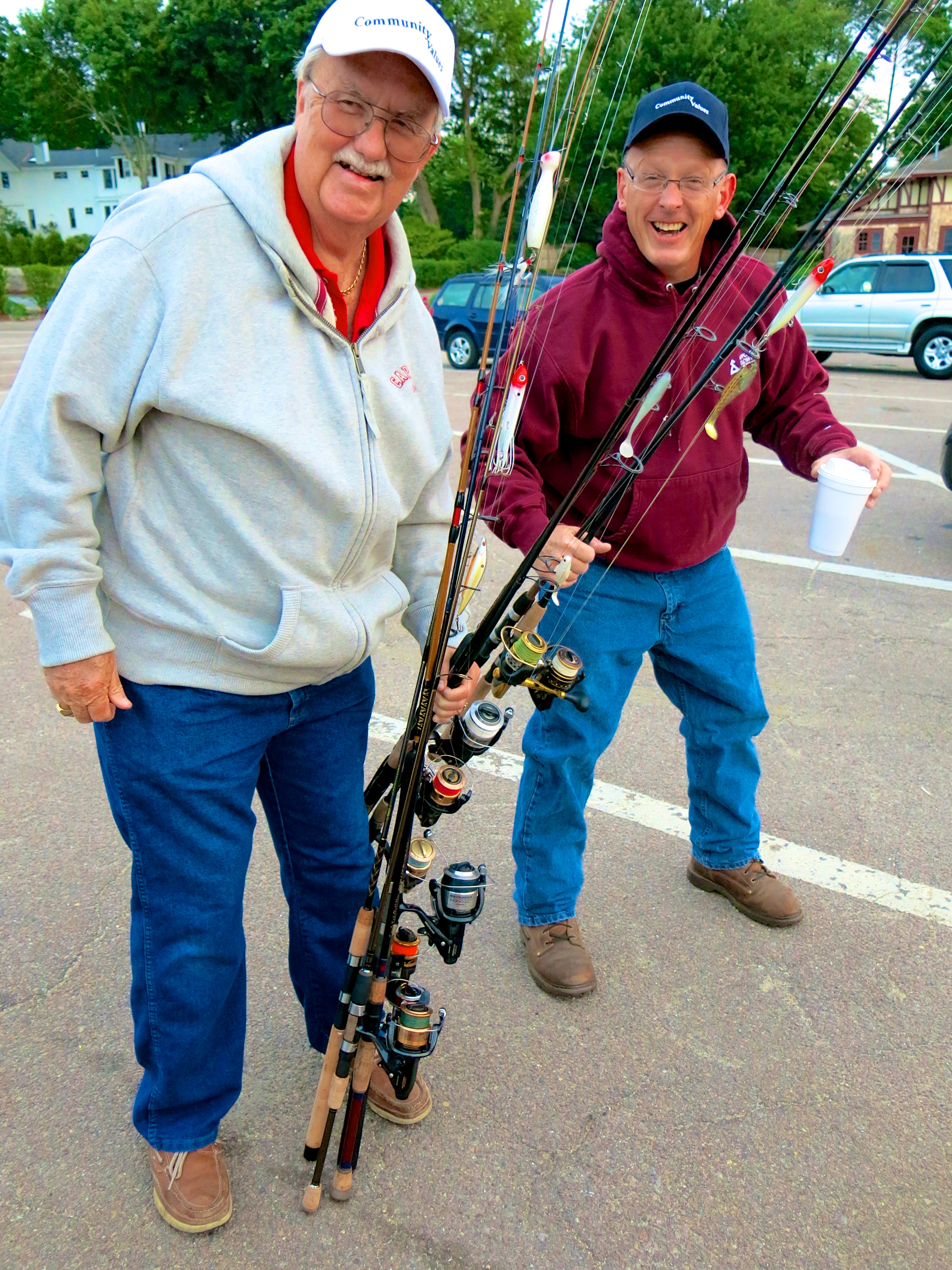 As you may have read before, Gary & crew have been fishing with me for years. One of their trademarks is to arrive with Dunkin Donuts coffeed for everyone and several coolers PACKED with food!!! Today, Gary and the crew brought several pounds of lobster meat, four types of rolls, fresh romaine lettuce, spring water, ice tea, soda; fresh pastries, chocolate chip cookies, several types of candy bars, chocolate eclairs, sandwiches, and the list goes on! After fishing hard for several hours, we stopped and we dined!
