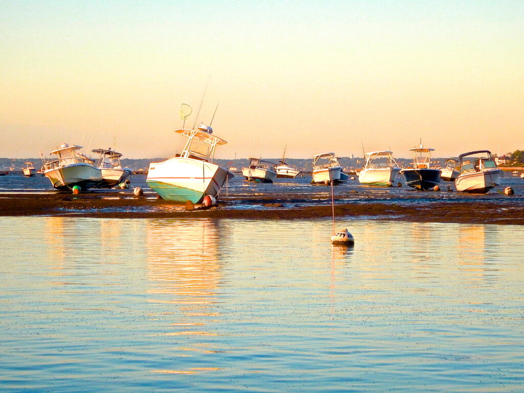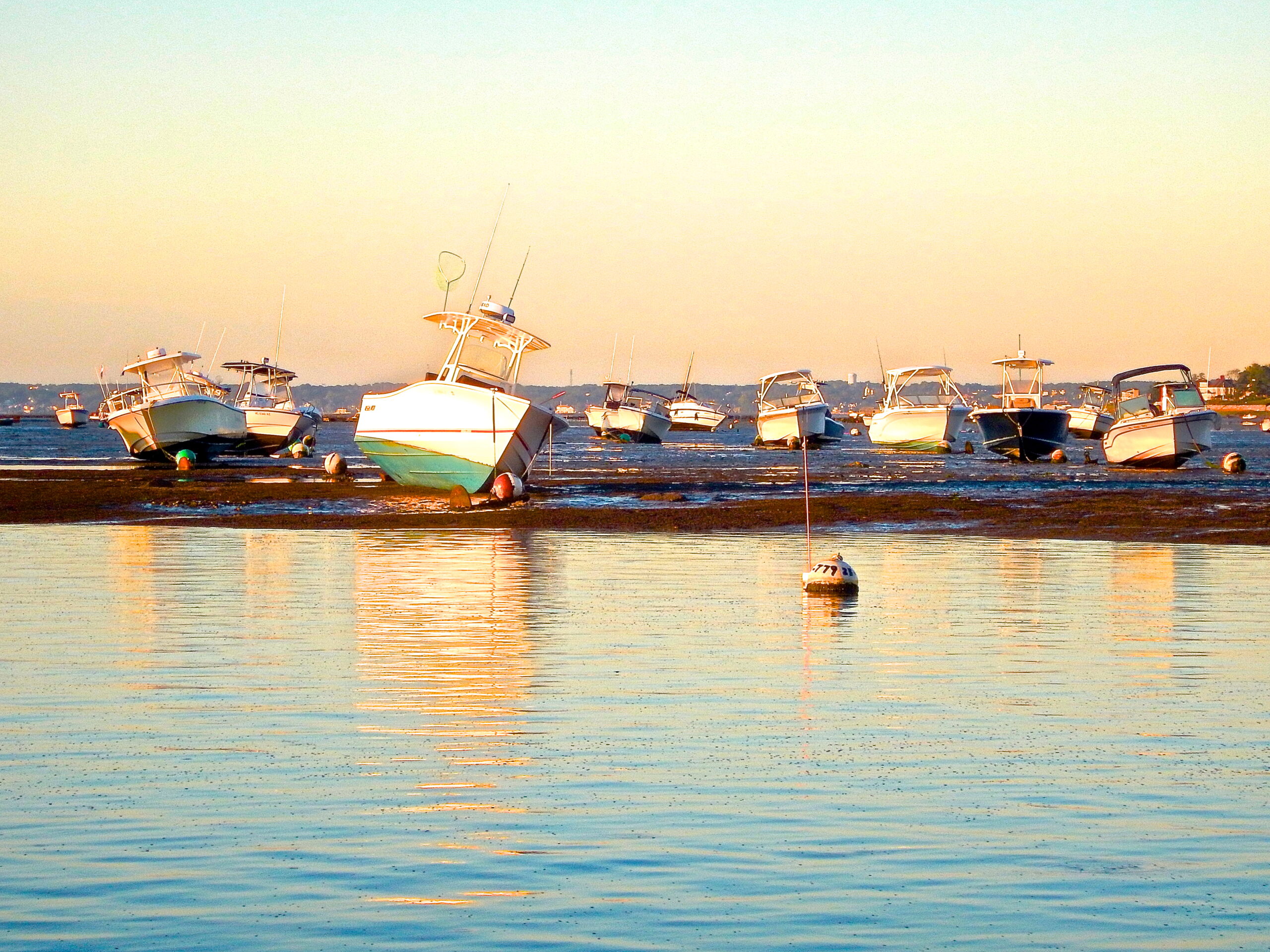 On board today, Kurt Upham and Dave Mulcahy of Oh, Deer for light tackle striped bass. At first light, dead calm and dead low -1.3 runout with most boats in the harbor high and dry on the flats. It looked like the surface of Mars out there.
