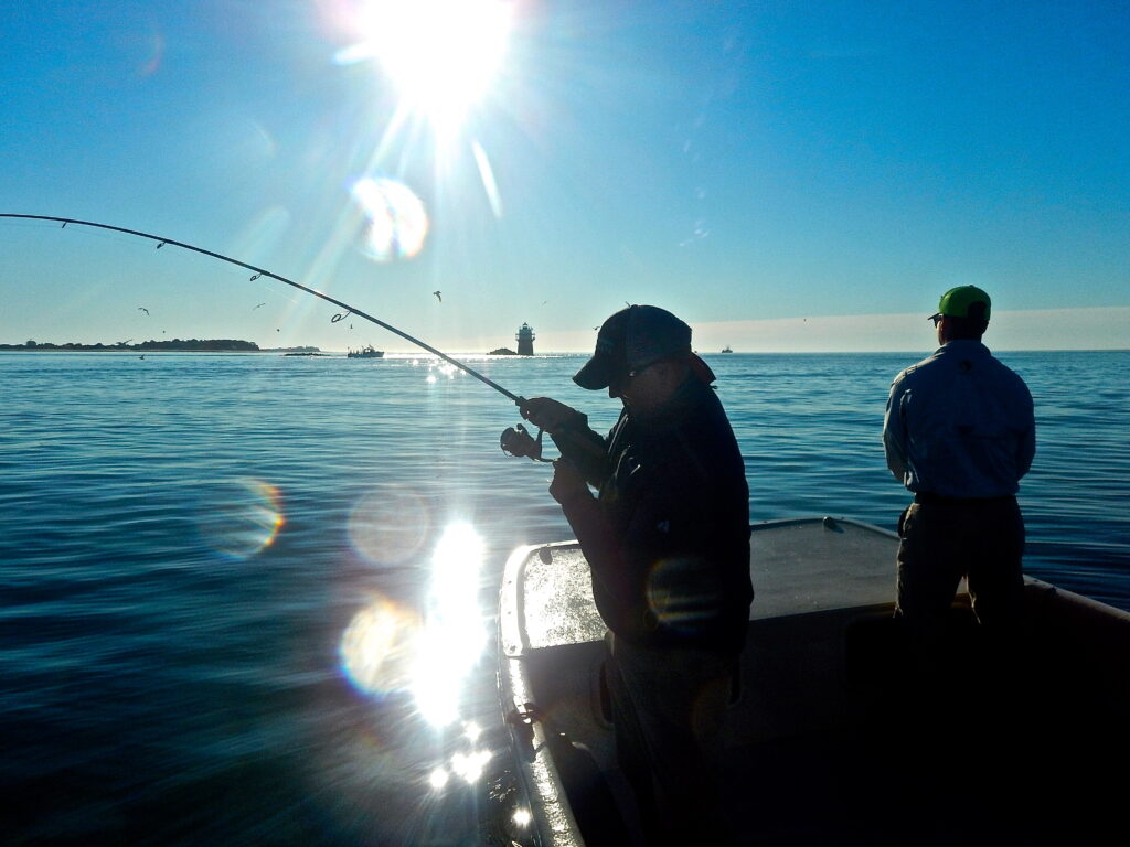 We very slowly worked out way out into the bay and passed a lot of immature pogies along the way. The tide was still slack and no fish were found anywhere. We check the Bug Light area and then picked up our first fish along a sandbar.