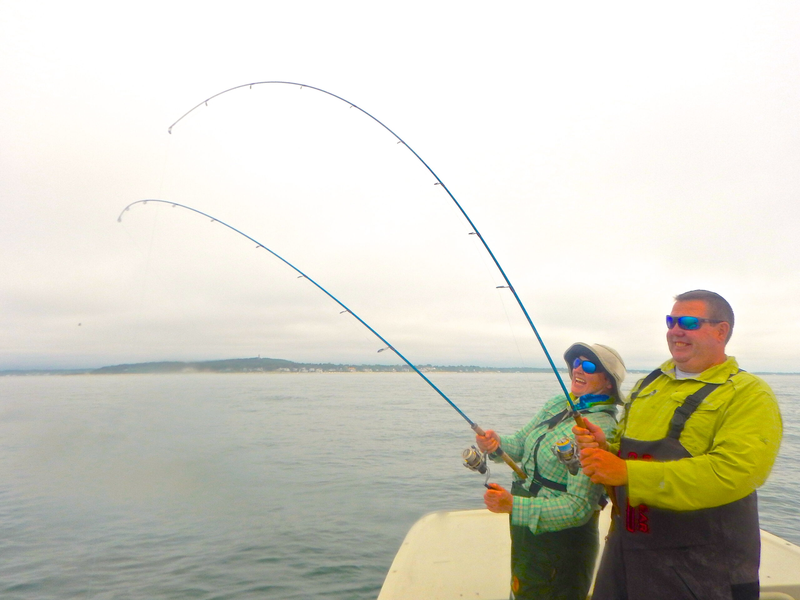Of particular interest, there are Atlantic sturgeon inside the bay this season and I have seen them leaping clear of the water. I did not see them today, but got a note from Billy who did. They are amazing fish that are protected so if you hook up, they have to be released right away. They are anadromous fish like Atlantic salmon and can live 60 years or longer and grow to 800 lbs. We also saw a seal today but no sign of great white sharks. No complaints. I hang over the side of my skiff all day long with my arms in the water and my head and shoulders inches above the water, unhooking and releasing fish. GW are always a serious concern.
