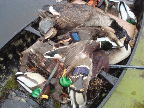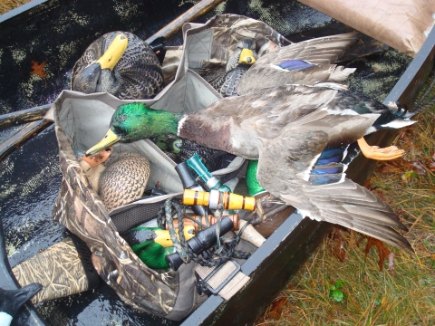 BAYMEN Guide Service, Inc. offers excellent gunning for puddle ducks on public and private waters throughout Southeastern Massachusetts and Cape Cod. BAYMEN puddle duck hunts target wood ducks, black ducks, mallard, and green-wing teal. We frequently get Canada geese in a mixed bag.